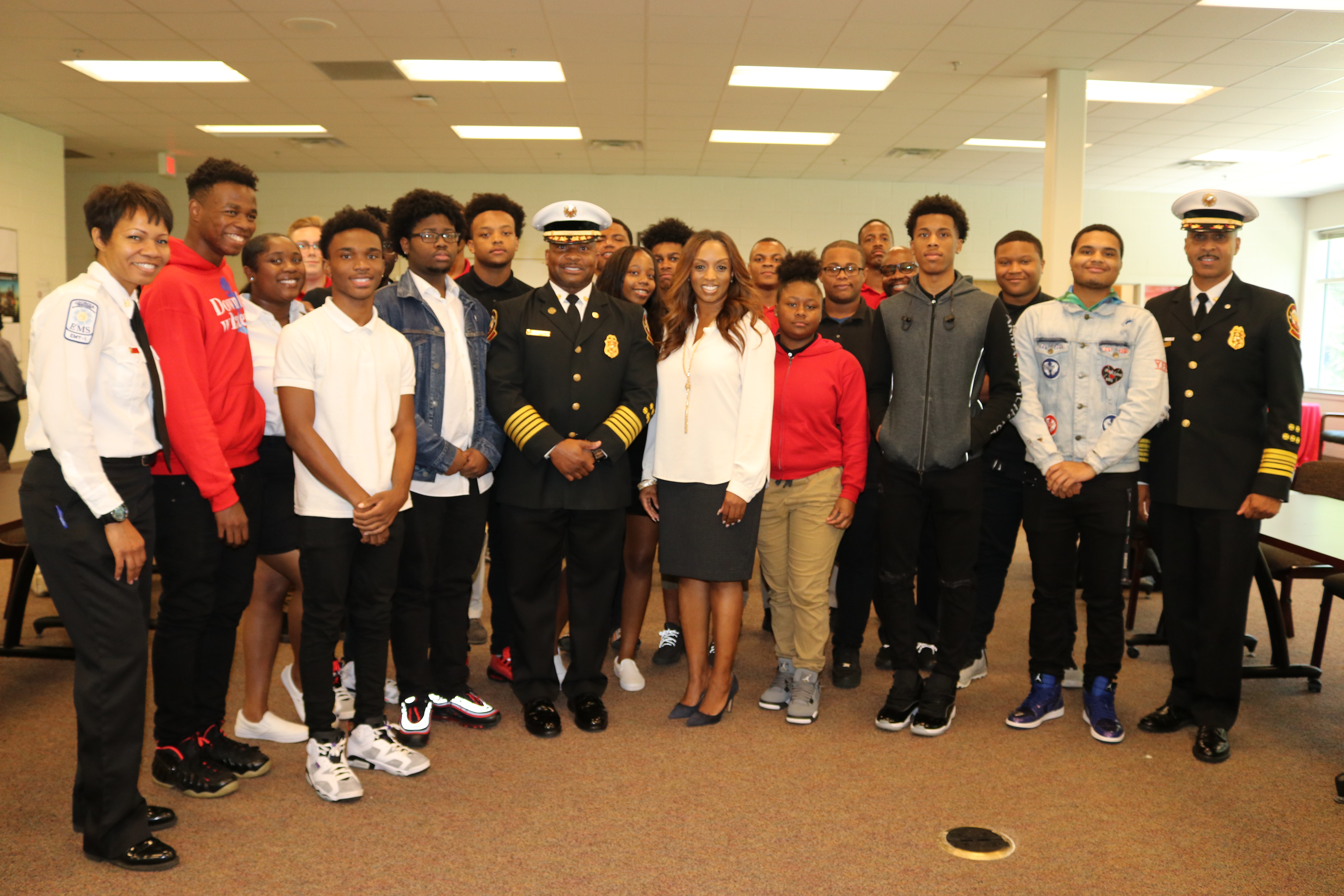 On Sept. 26, Fire Chief Randall B. Slaughter stopped by D.M. Therrell High School to discuss career options with fire pathway students and their parents.