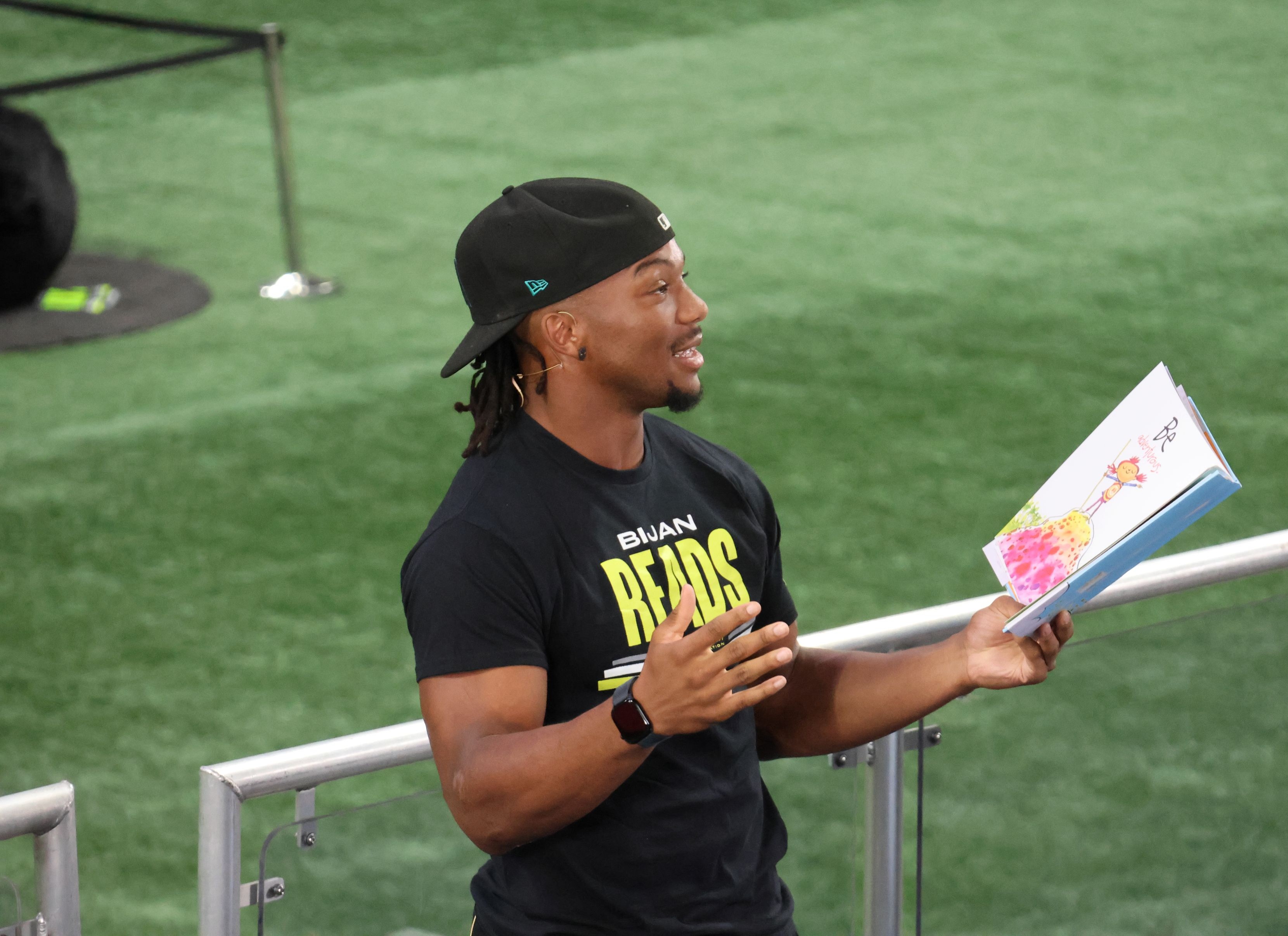 Atlanta Falcons running back Bijan Robinson welcomed 7,500 Atlanta Public Schools (APS) elementary students to Mercedes-Benz Stadium for the first Bijan Reads Book Fair.